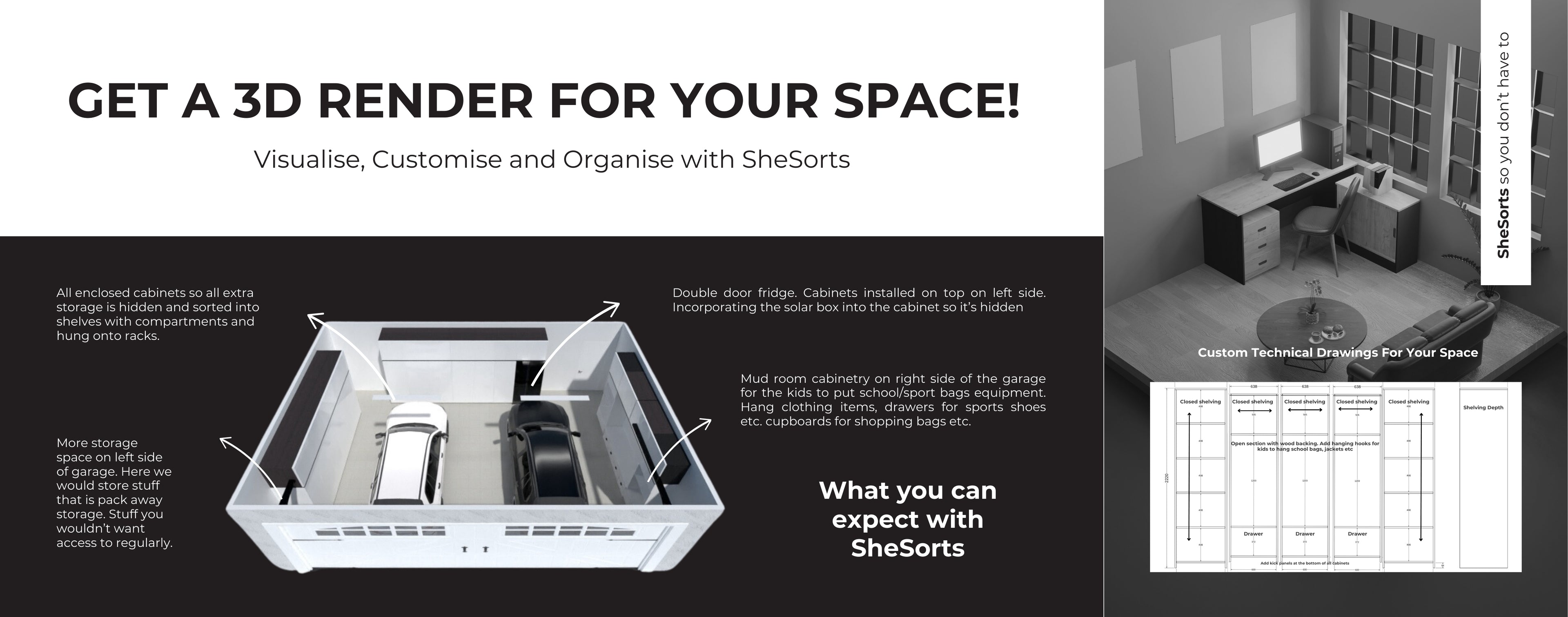 - Large garage projects: +R1000 cleaning fee